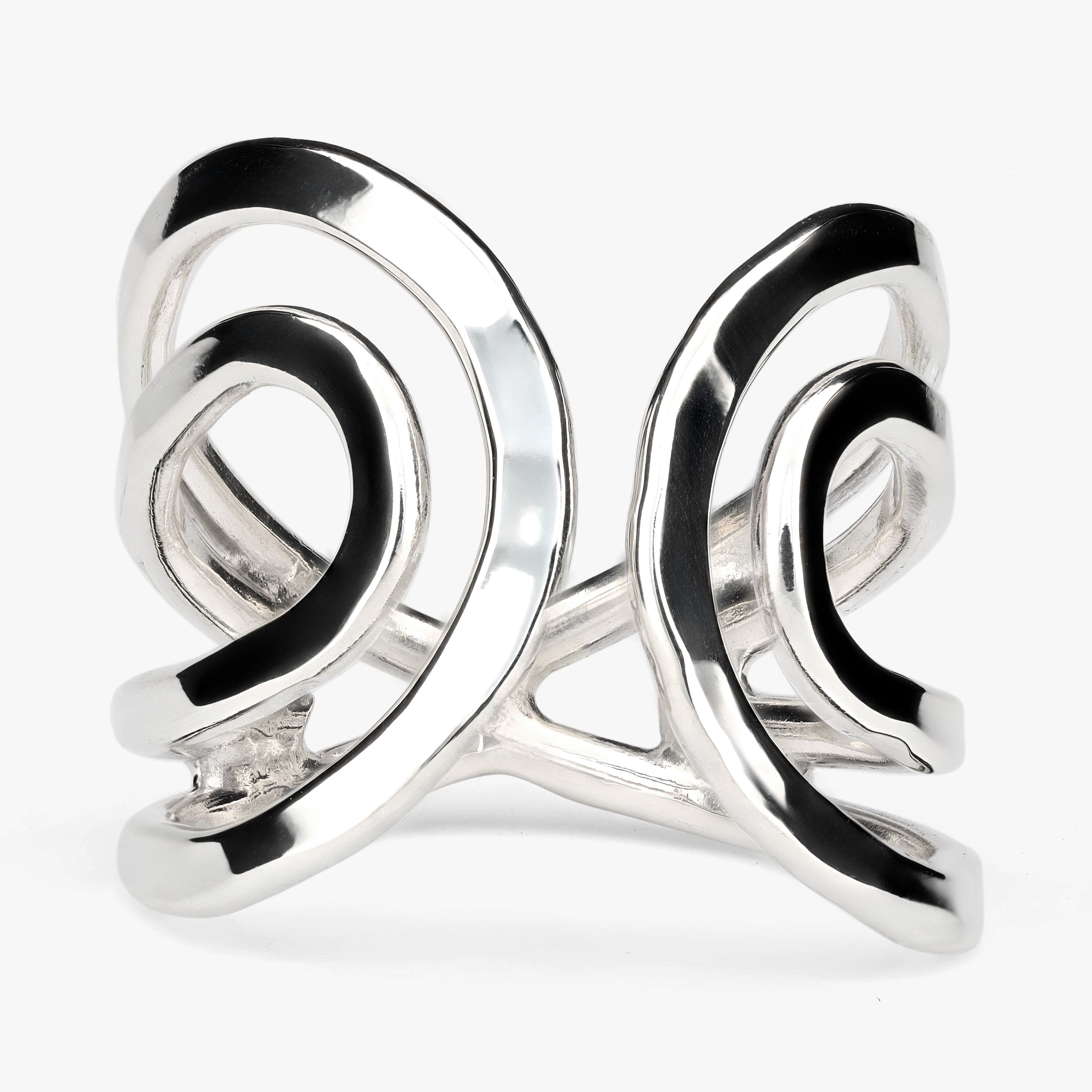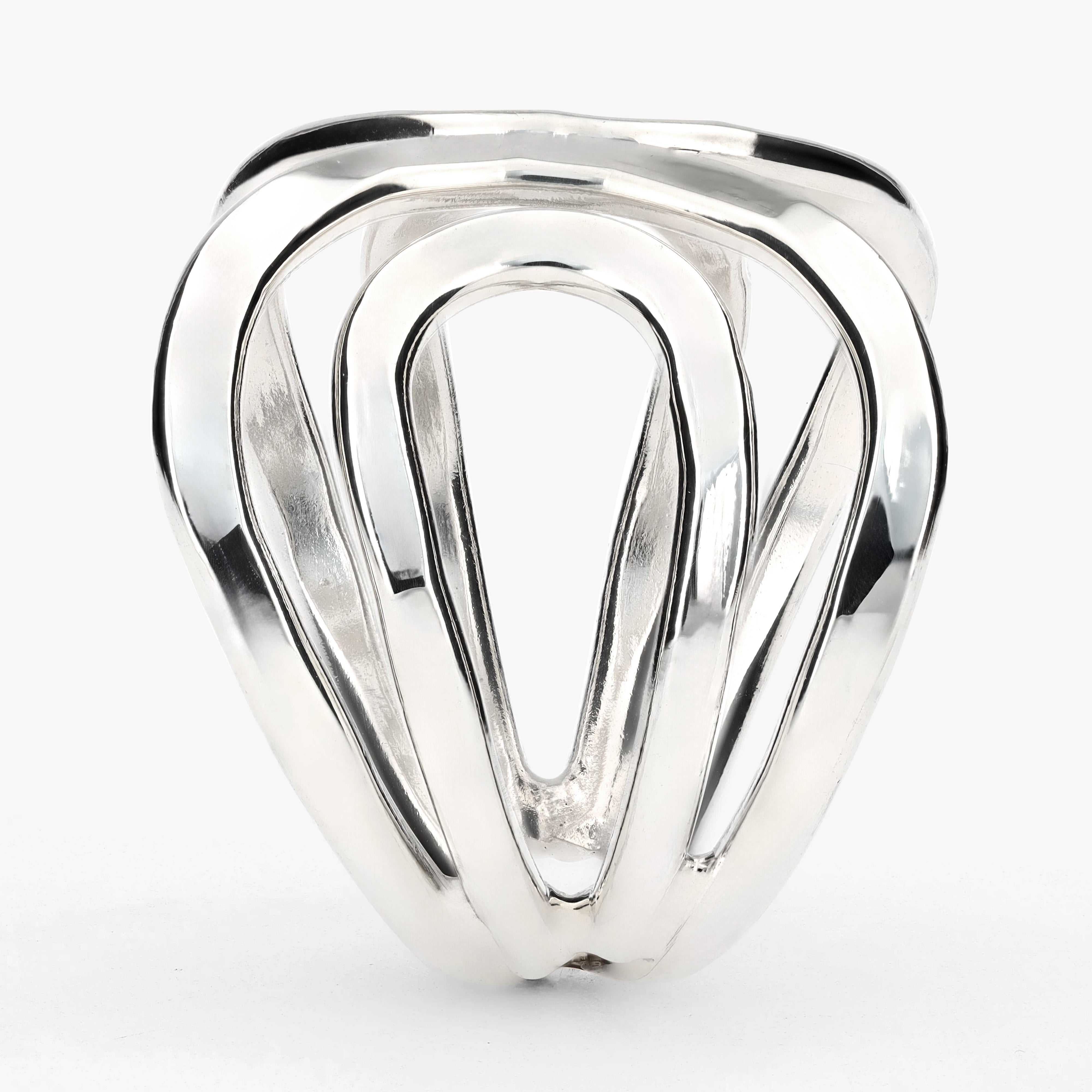Un juego de formas entrelazadas que da la sensación de movimiento constante.