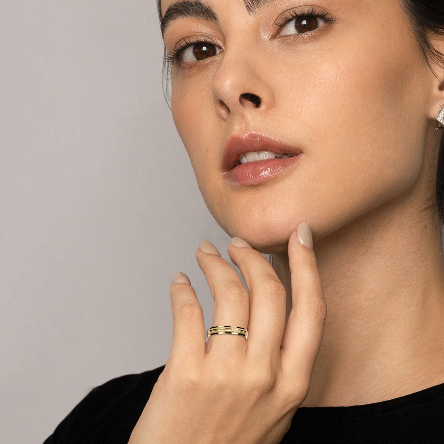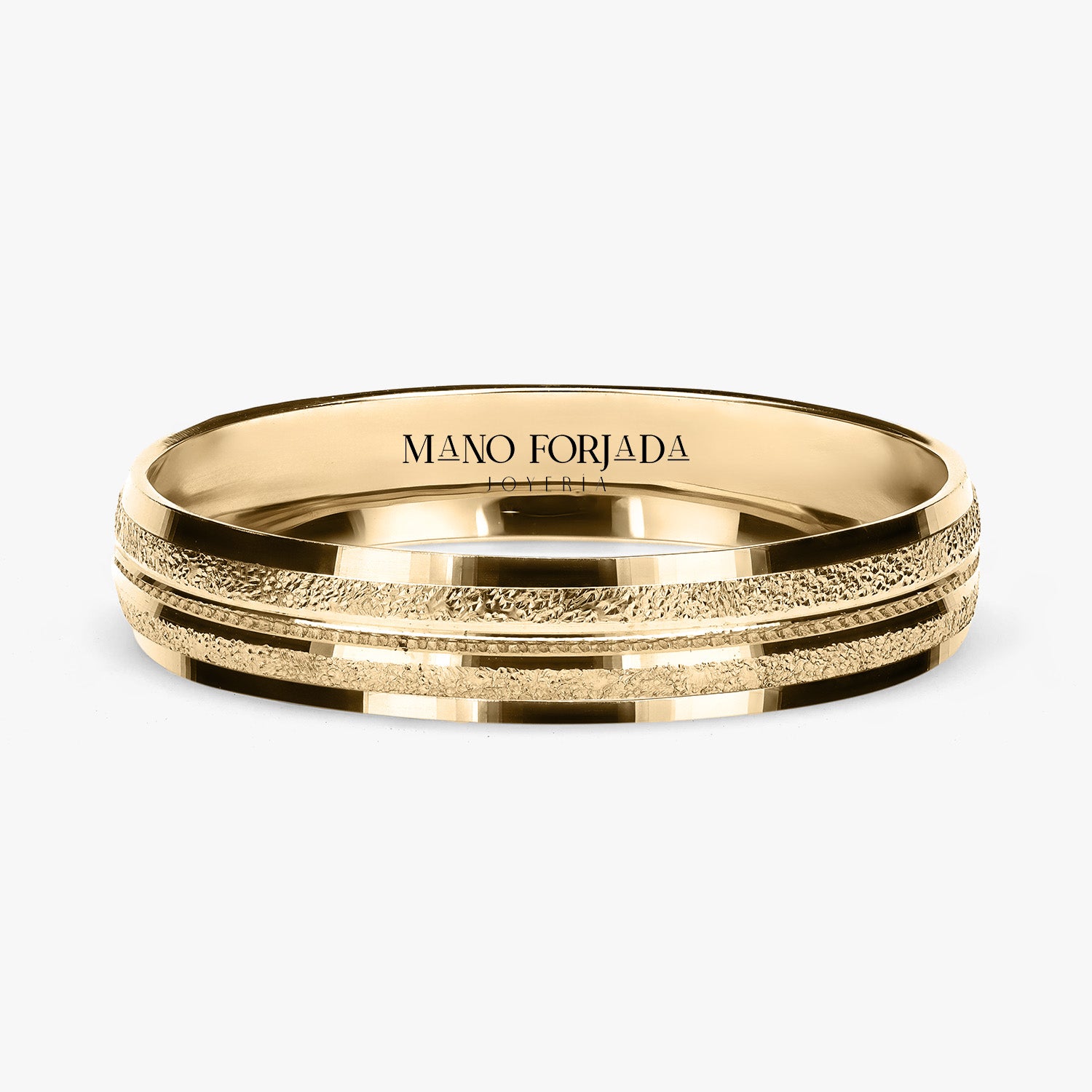 El tipo de argolla que estas viendo es tipo clásica, lo que significa que tiene forma de media caña al interior. Esta argolla es ligera, pero resistente. Esta hecha para durar toda una vida con un cuidado adecuado.