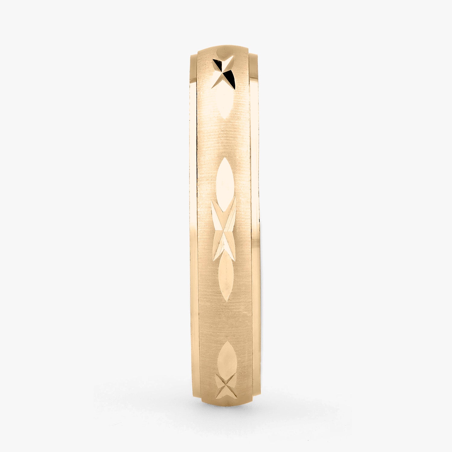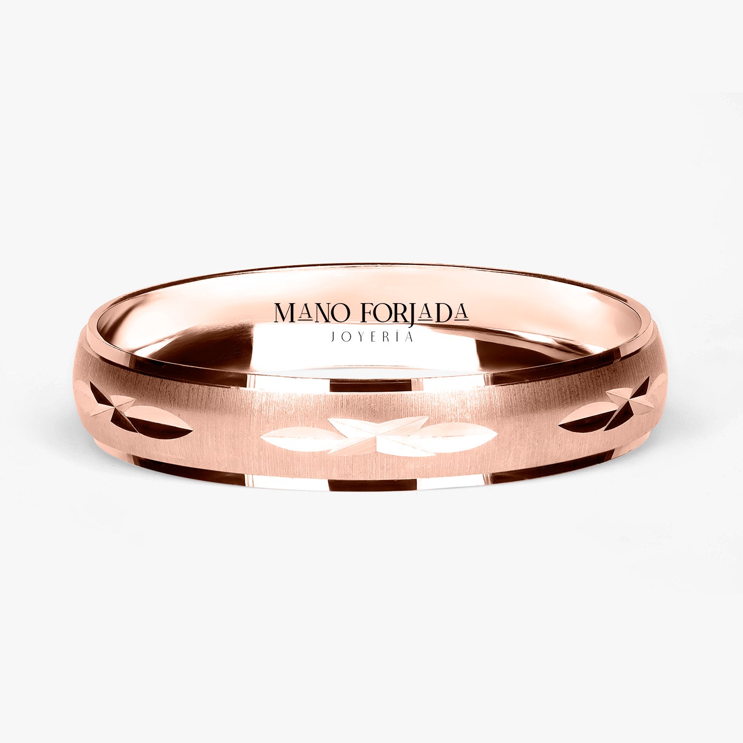 El tipo de argolla que estas viendo es tipo clásica, lo que significa que tiene forma de media caña al interior. Esta argolla es ligera, pero resistente. Esta hecha para durar toda una vida con un cuidado adecuado.