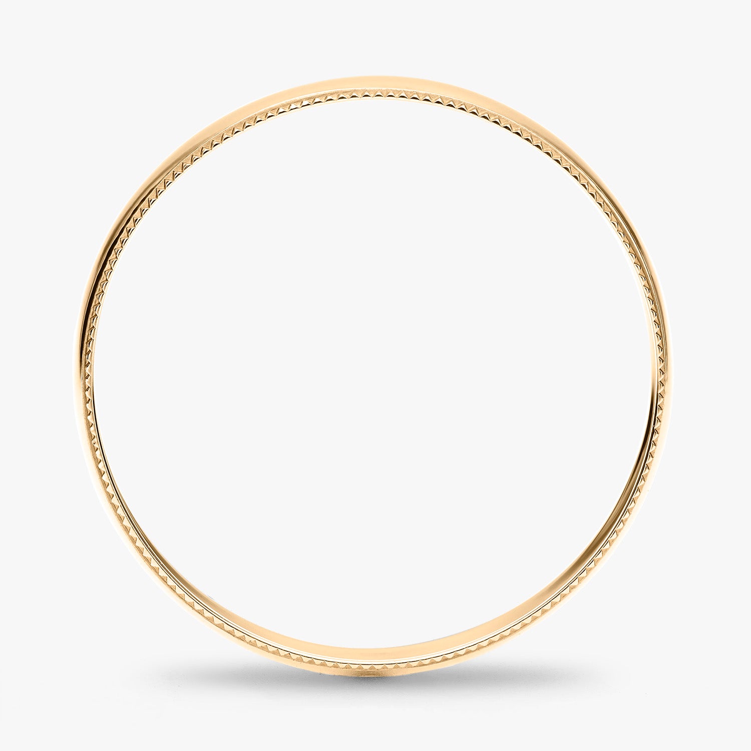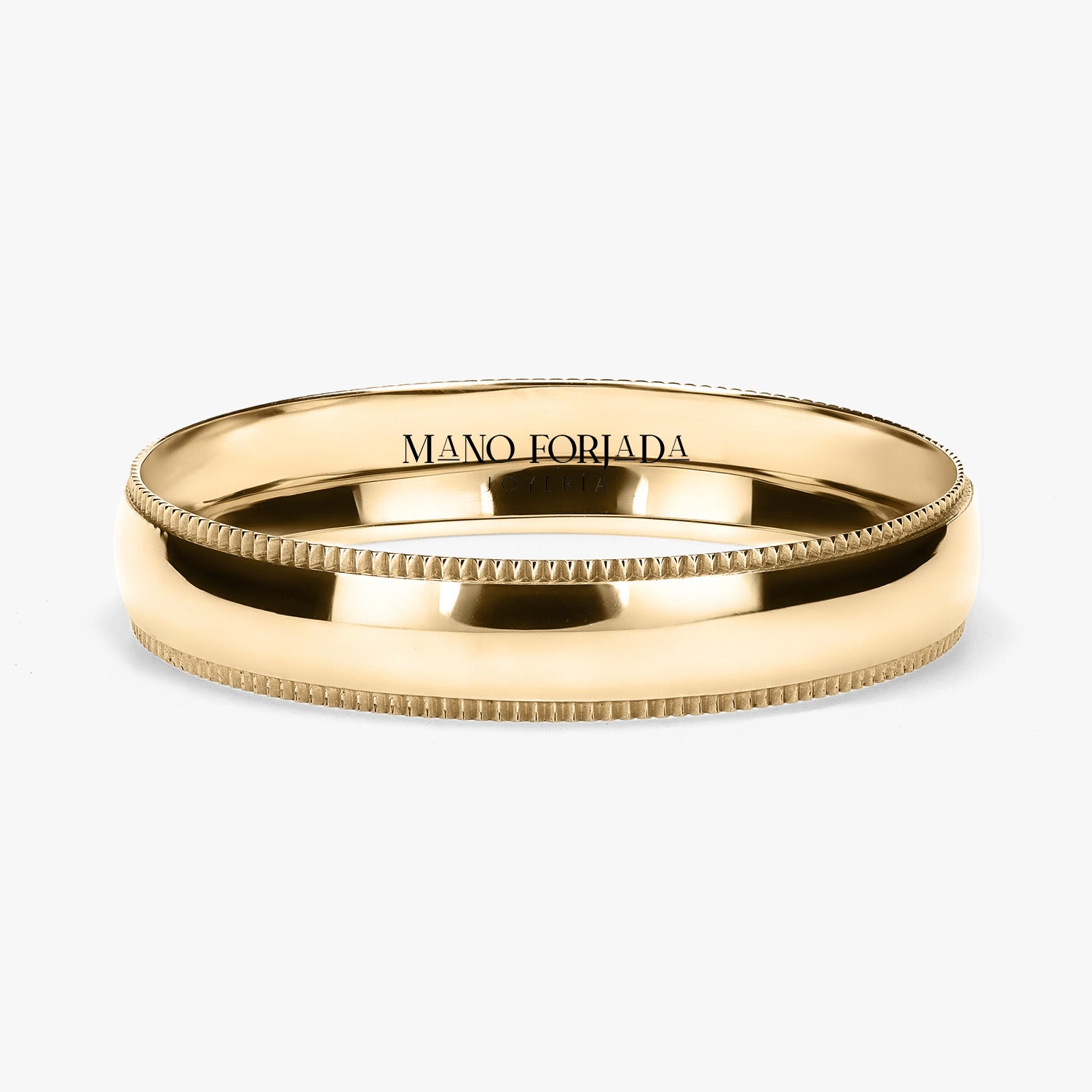 El tipo de argolla que estas viendo es tipo clásica, lo que significa que tiene forma de media caña al interior. Esta argolla es ligera, pero resistente. Esta hecha para durar toda una vida con un cuidado adecuado.