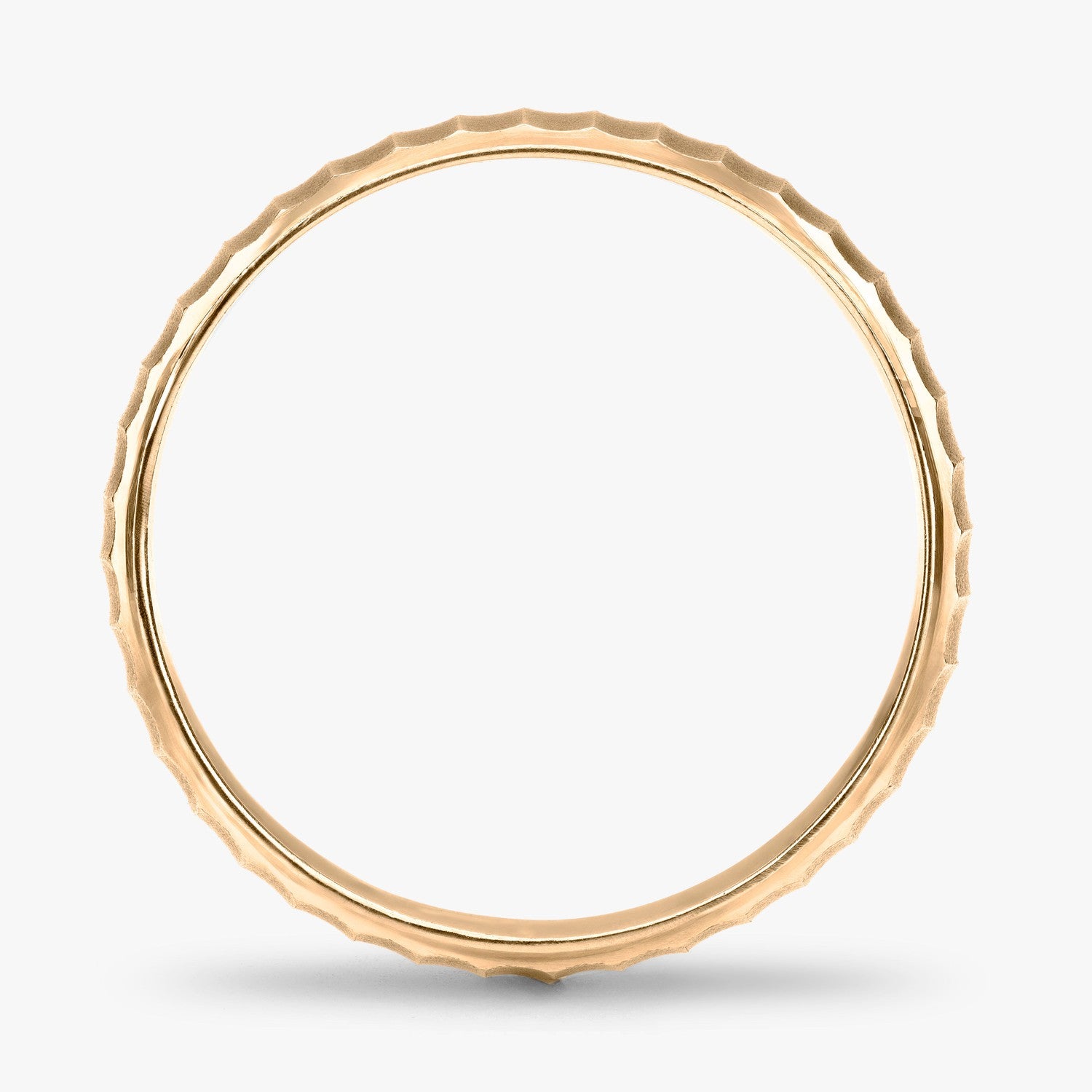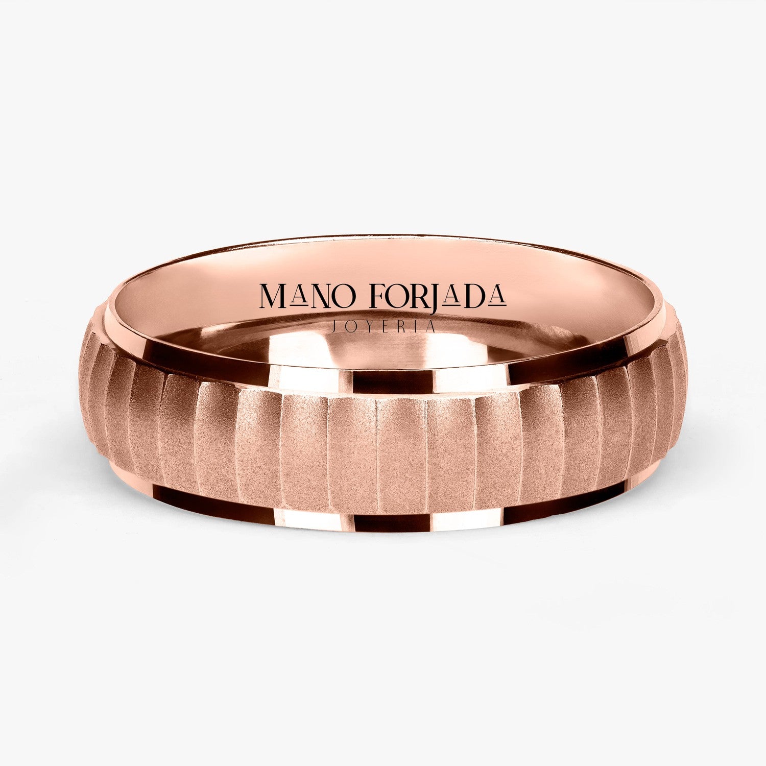 El tipo de argolla que estas viendo es tipo clásica, lo que significa que tiene forma de media caña al interior. Esta argolla es ligera, pero resistente. Esta hecha para durar toda una vida con un cuidado adecuado.