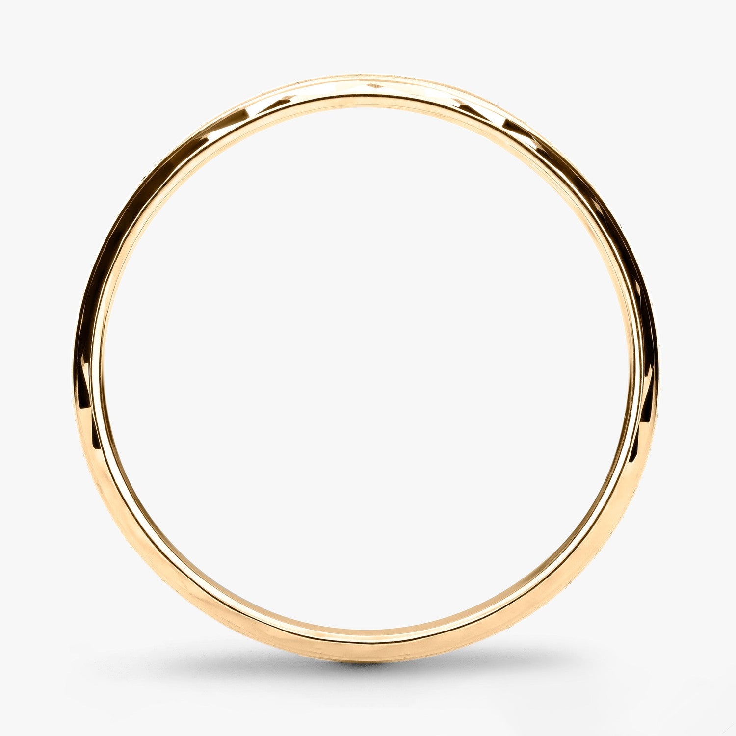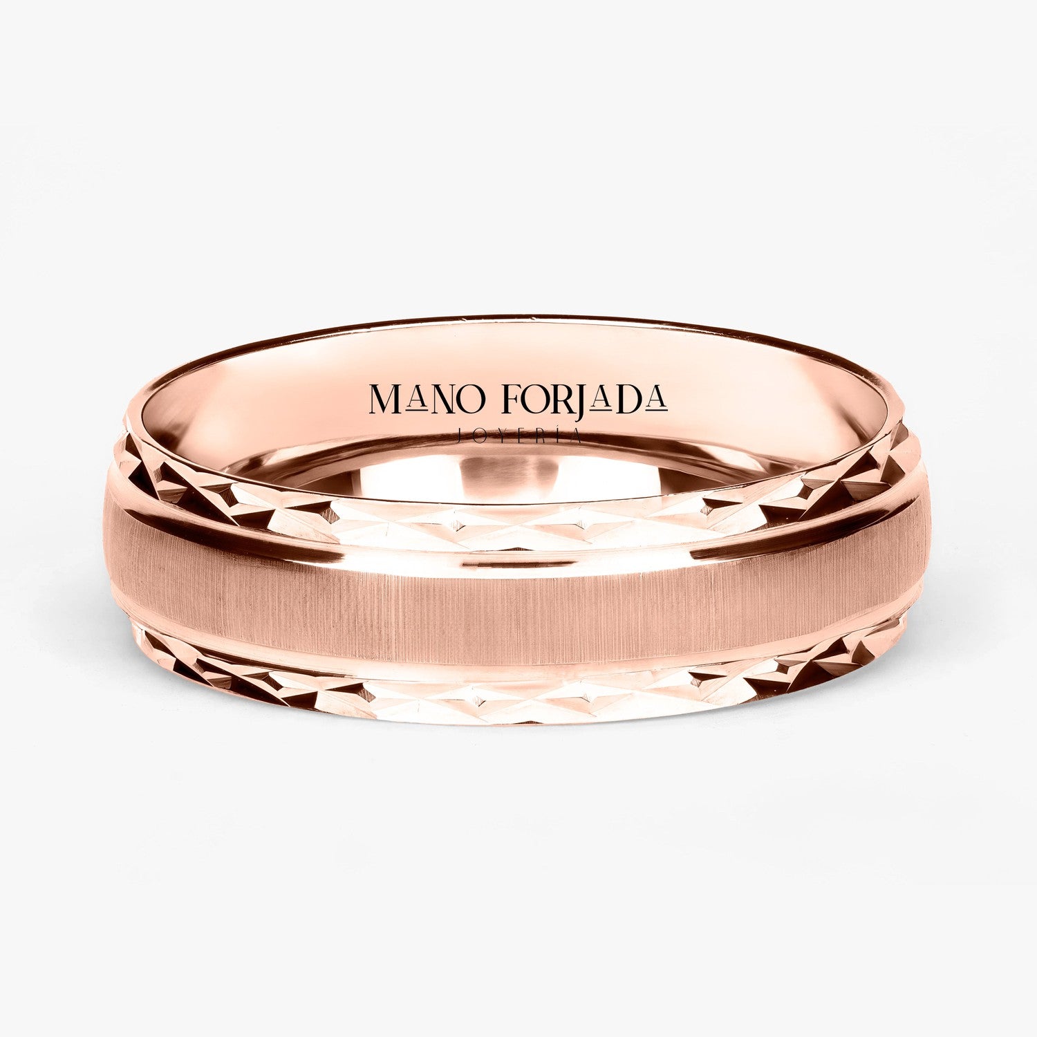 El tipo de argolla que estas viendo es tipo clásica, lo que significa que tiene forma de media caña al interior. Esta argolla es ligera, pero resistente. Esta hecha para durar toda una vida con un cuidado adecuado.