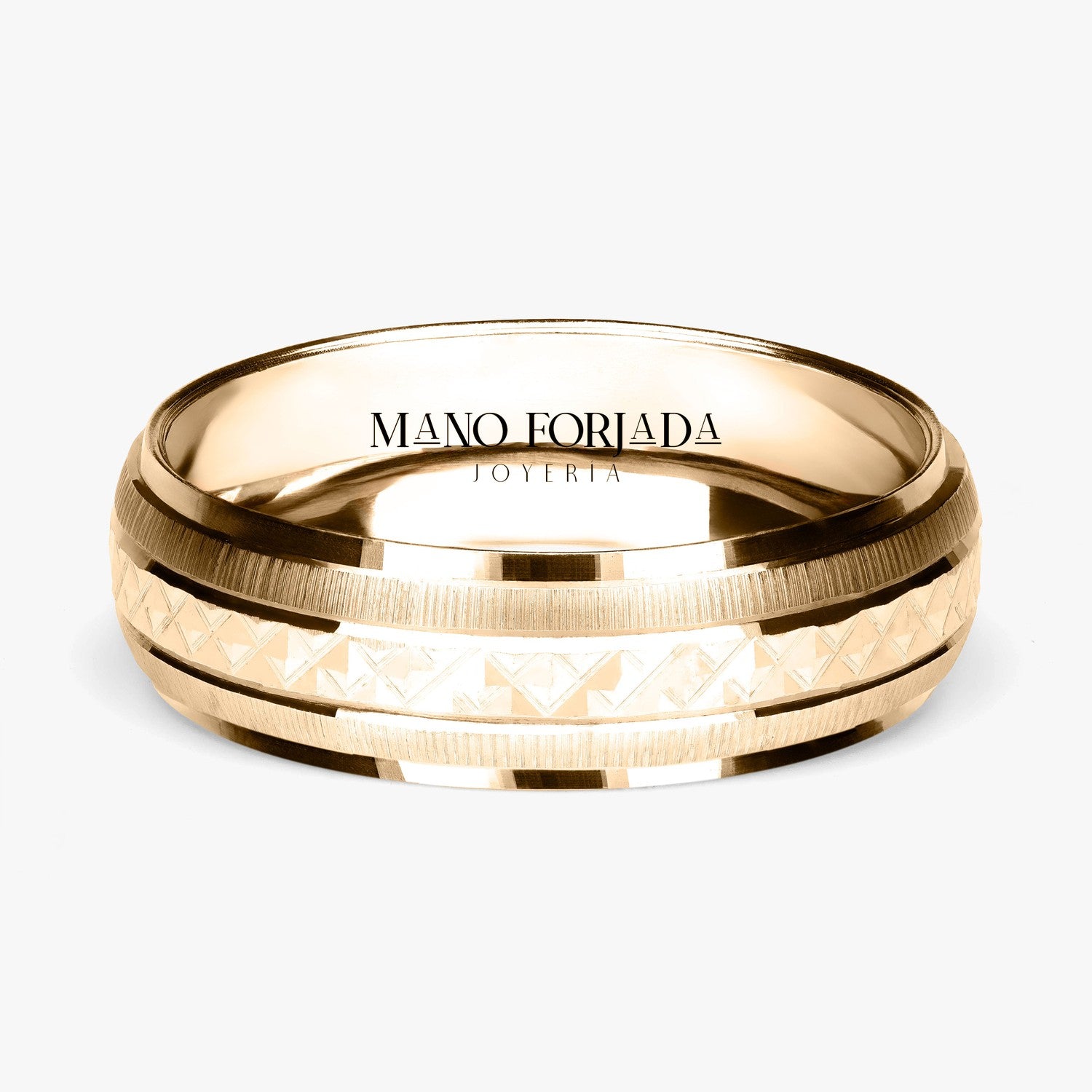 El tipo de argolla que estas viendo es tipo clásica, lo que significa que tiene forma de media caña al interior. Esta argolla es ligera, pero resistente. Esta hecha para durar toda una vida con un cuidado adecuado.