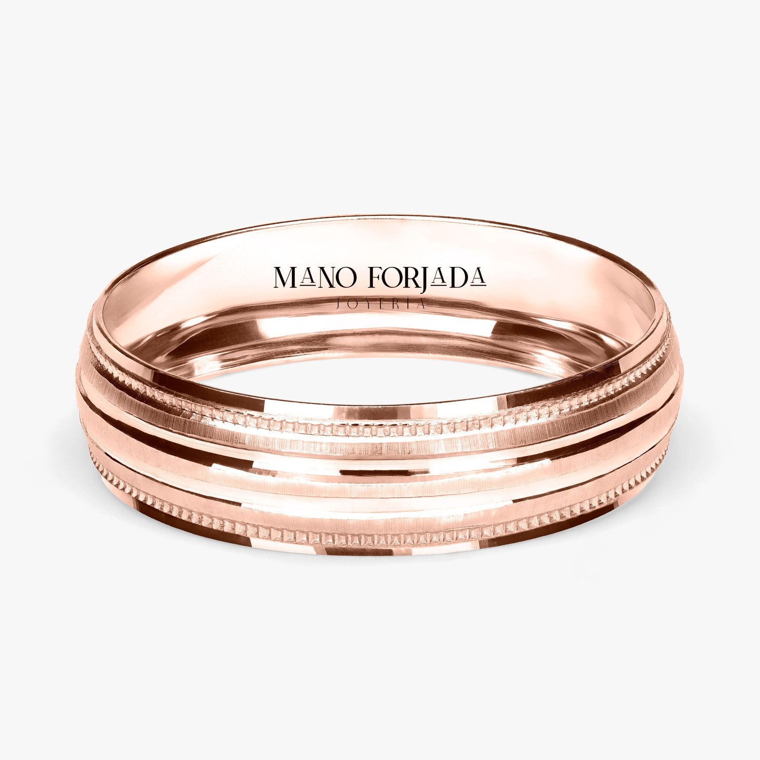 El tipo de argolla que estas viendo es tipo clásica, lo que significa que tiene forma de media caña al interior. Esta argolla es ligera, pero resistente. Esta hecha para durar toda una vida con un cuidado adecuado.