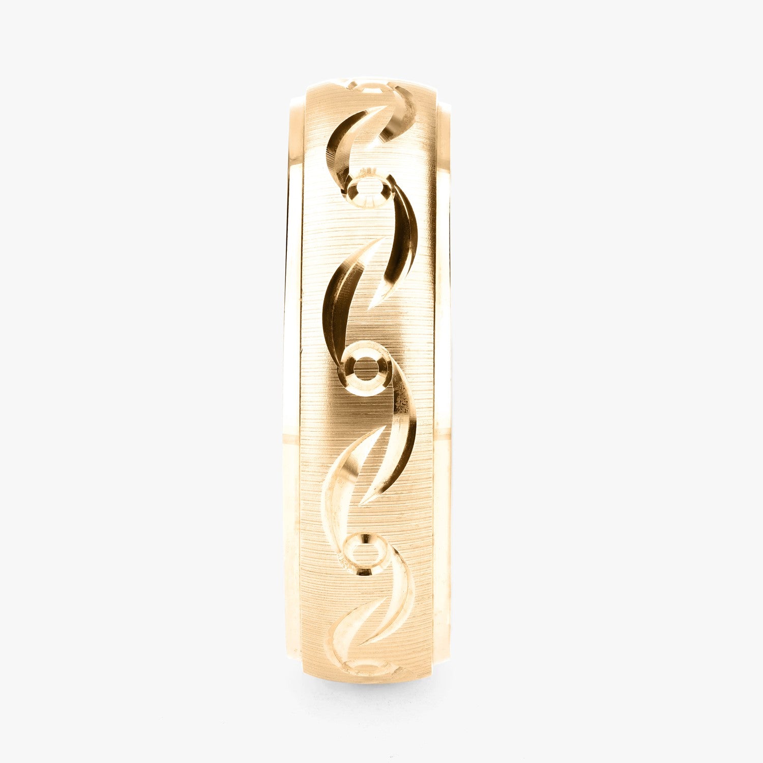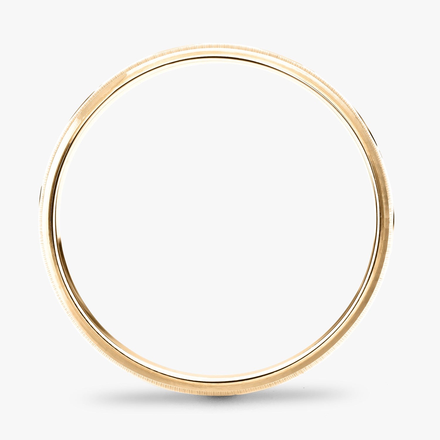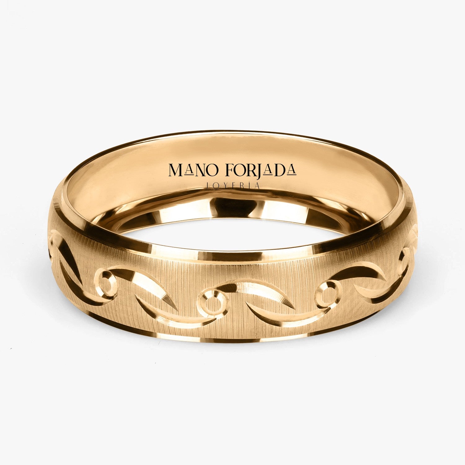 El tipo de argolla que estas viendo es tipo clásica, lo que significa que tiene forma de media caña al interior. Esta argolla es ligera, pero resistente. Esta hecha para durar toda una vida con un cuidado adecuado.