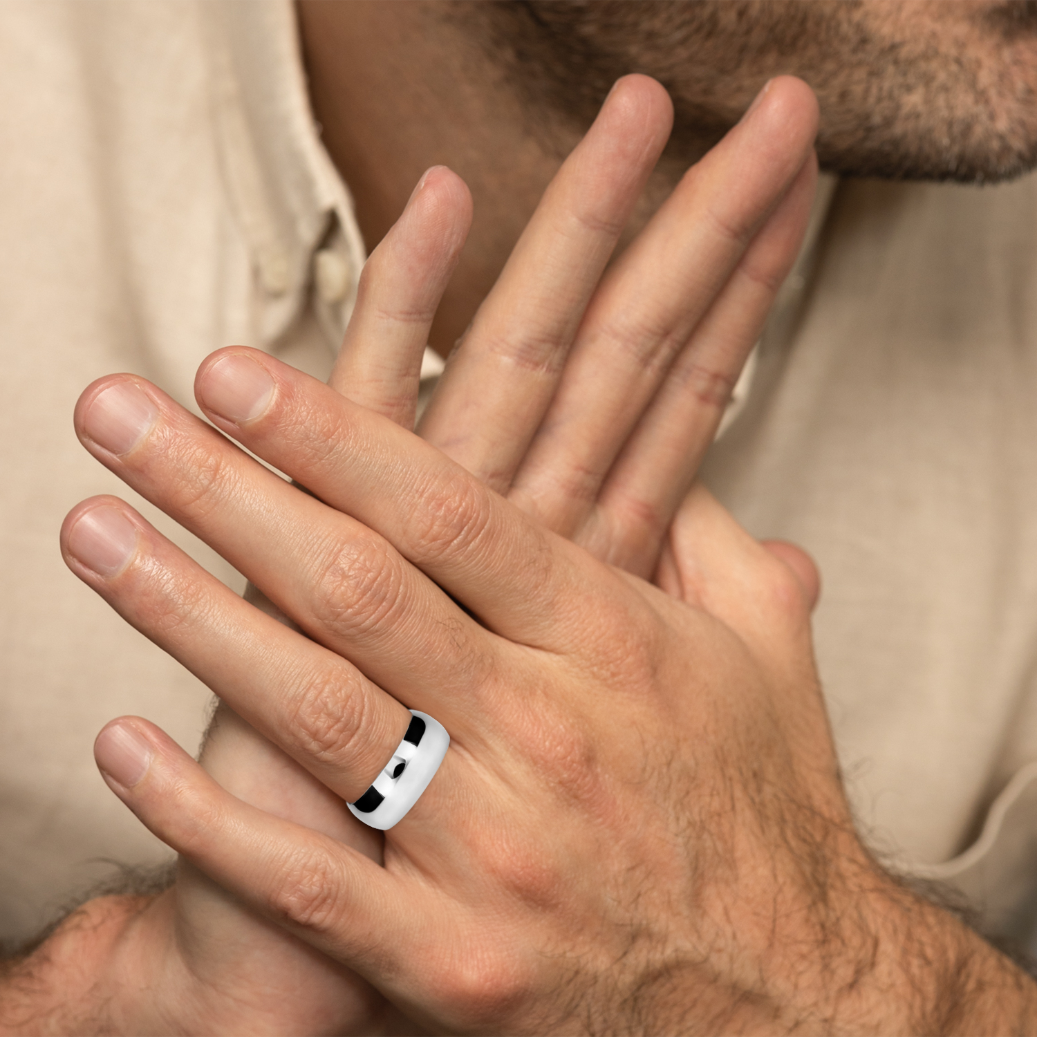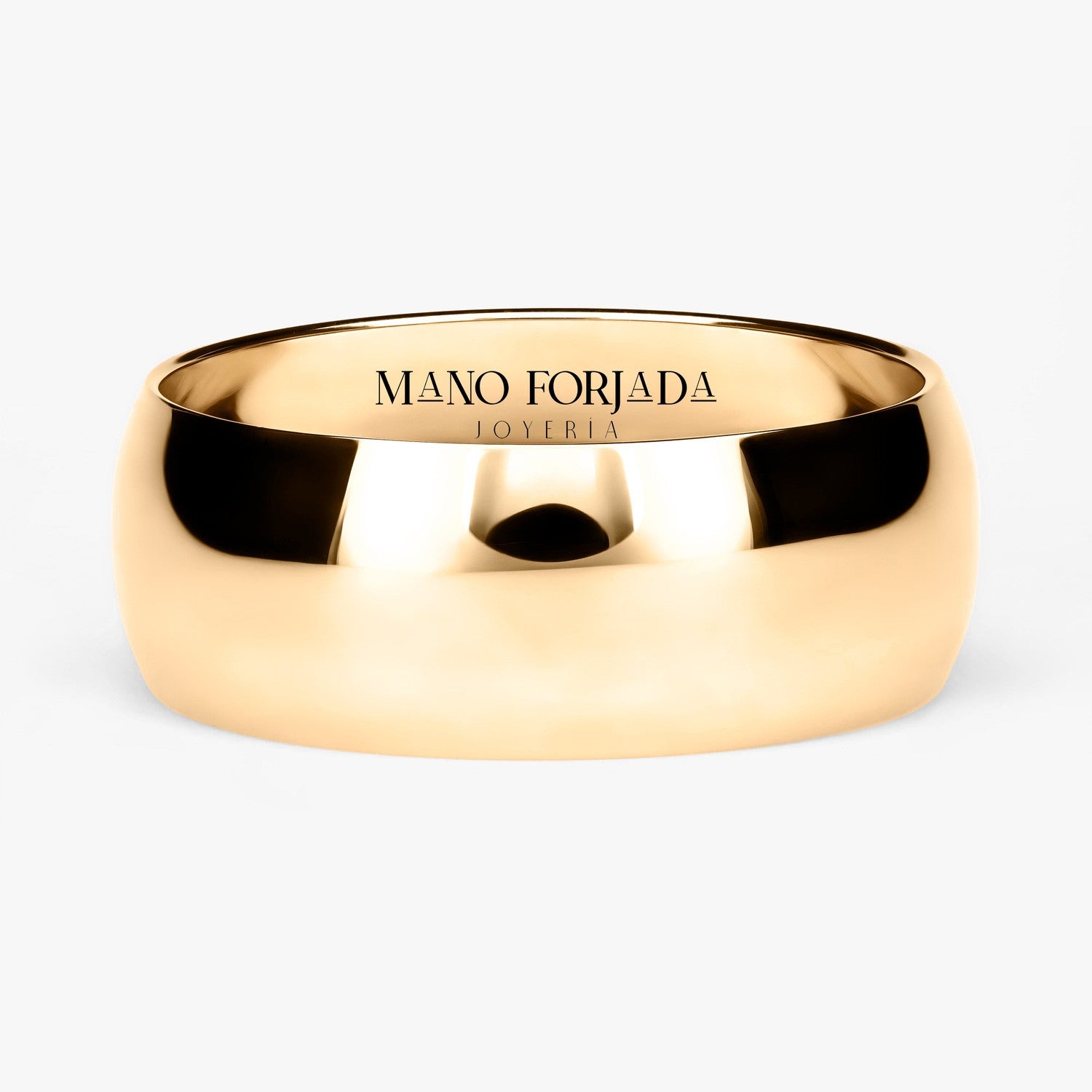 El tipo de argolla que estas viendo es tipo clásica, lo que significa que tiene forma de media caña al interior. Esta argolla es ligera, pero resistente. Esta hecha para durar toda una vida con un cuidado adecuado.