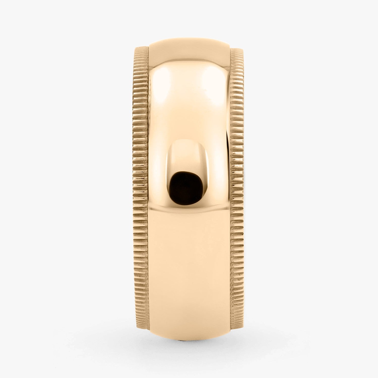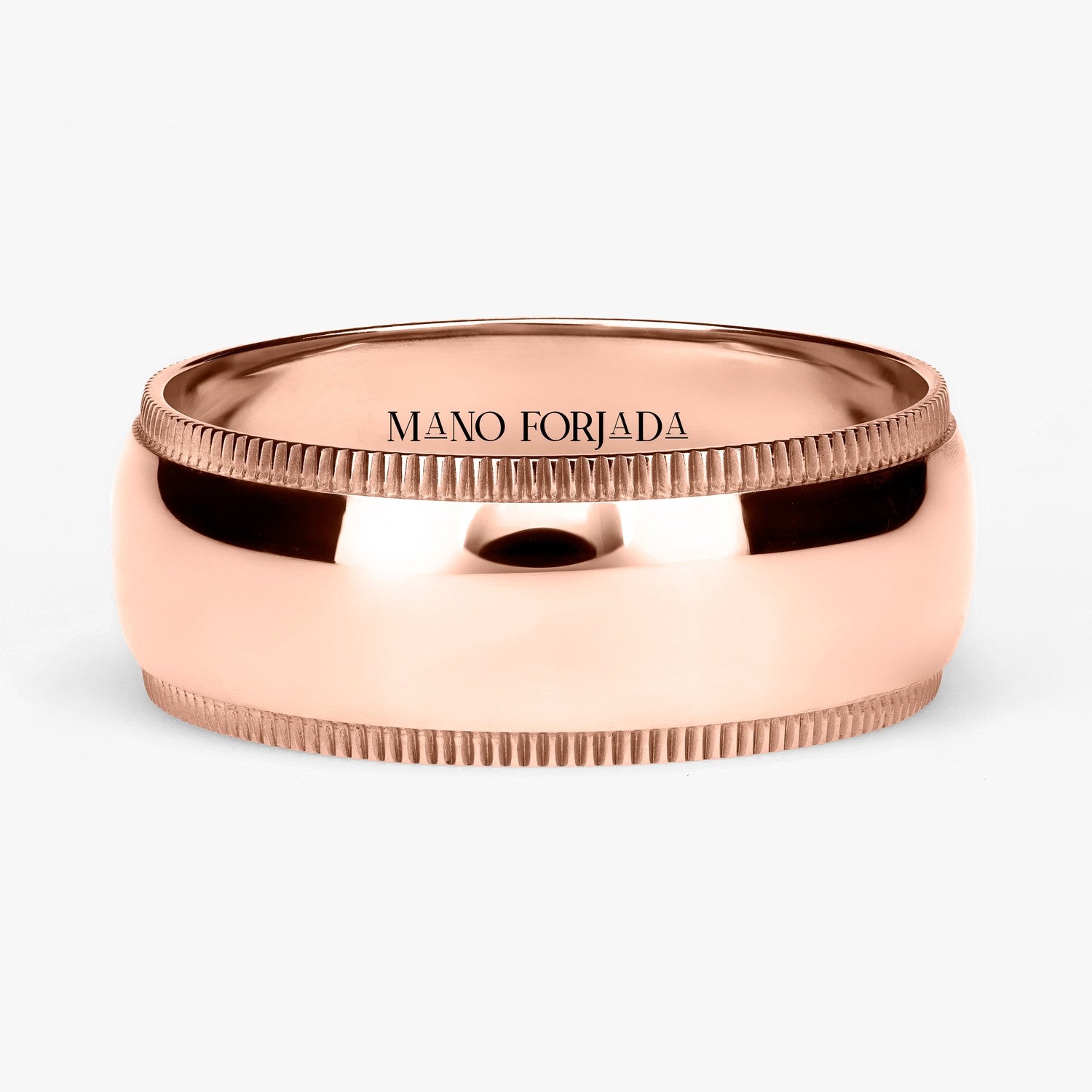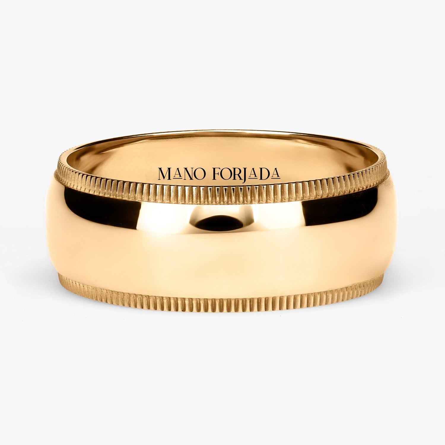 El tipo de argolla que estas viendo es tipo clásica, lo que significa que tiene forma de media caña al interior. Esta argolla es ligera, pero resistente. Esta hecha para durar toda una vida con un cuidado adecuado.