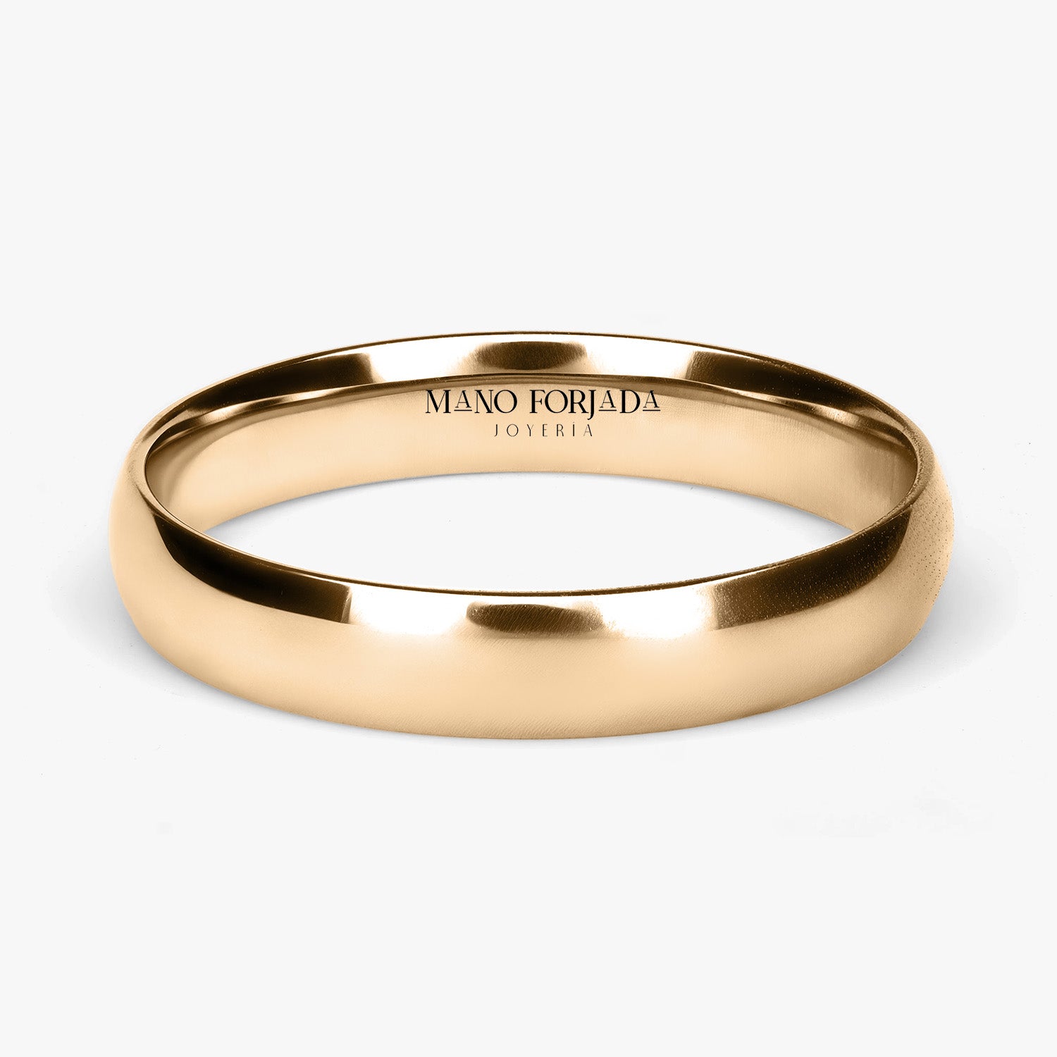 El tipo de argolla que estas viendo es tipo confort light, lo que significa que tiene forma acolchonada al exterior, pero tiene un interior hueco. Esta argolla es de un peso intermedio. Esta hecha para durar toda una vida con un cuidado adecuado.