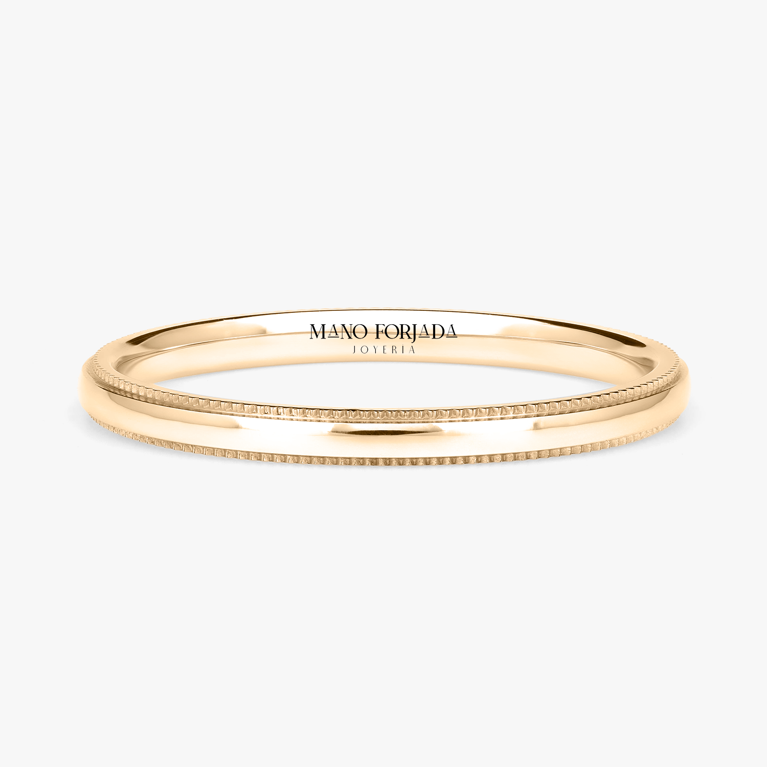 El tipo de argolla que estas viendo es tipo confort rellena, lo que significa que tiene forma acolchonada al interior. Esta argolla es la más pesada de nuestros modelos, muy resistente. Esta hecha para durar toda una vida con un cuidado adecuado.