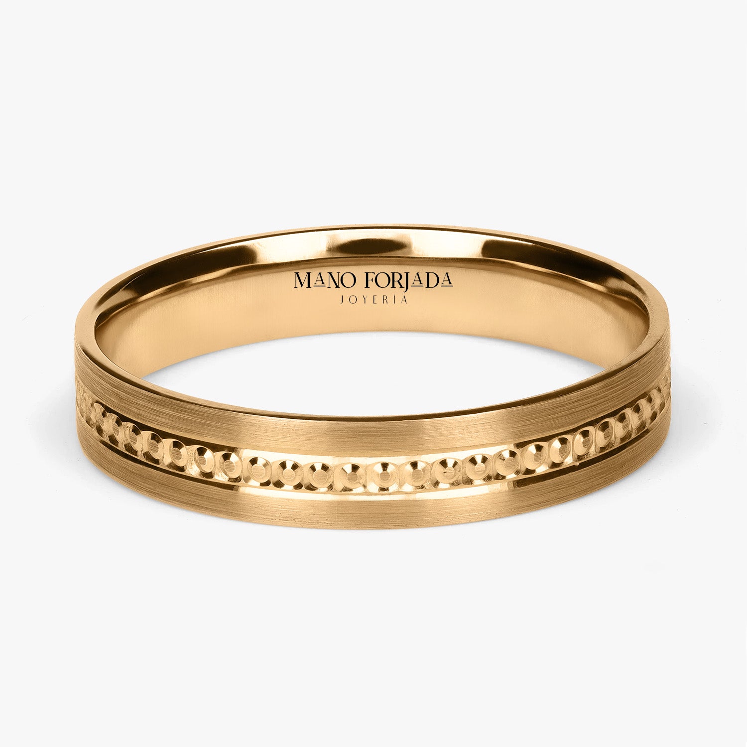 El tipo de argolla que estas viendo es tipo confort rellena, lo que significa que tiene forma acolchonada al interior. Esta argolla es la más pesada de nuestros modelos, muy resistente. Esta hecha para durar toda una vida con un cuidado adecuado.