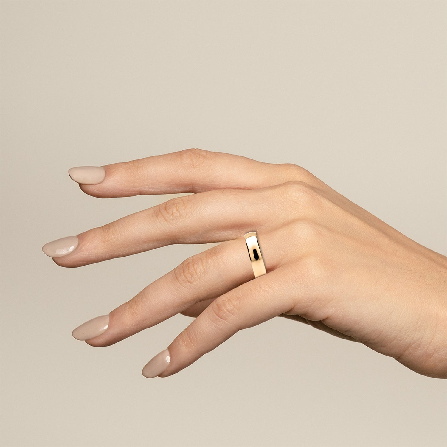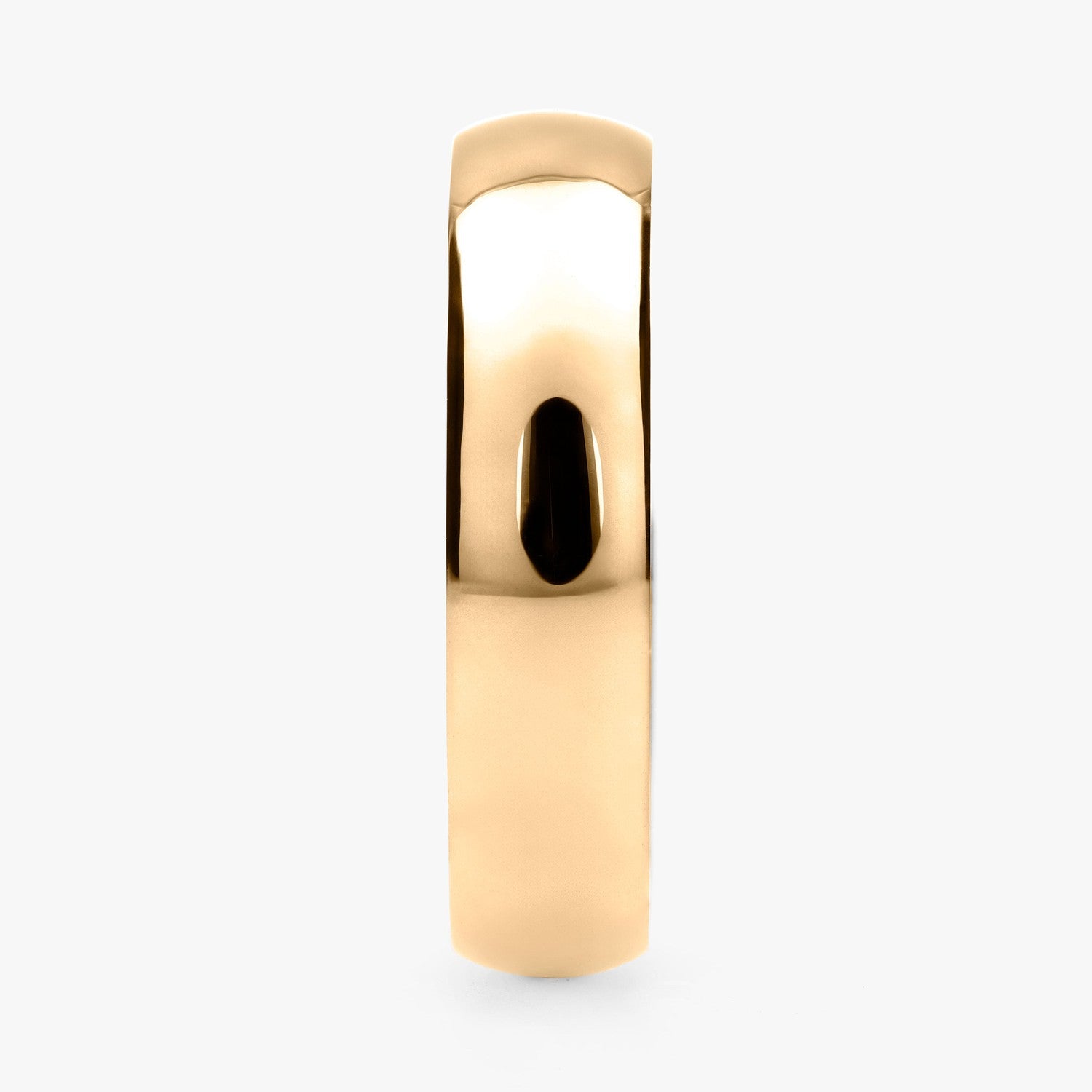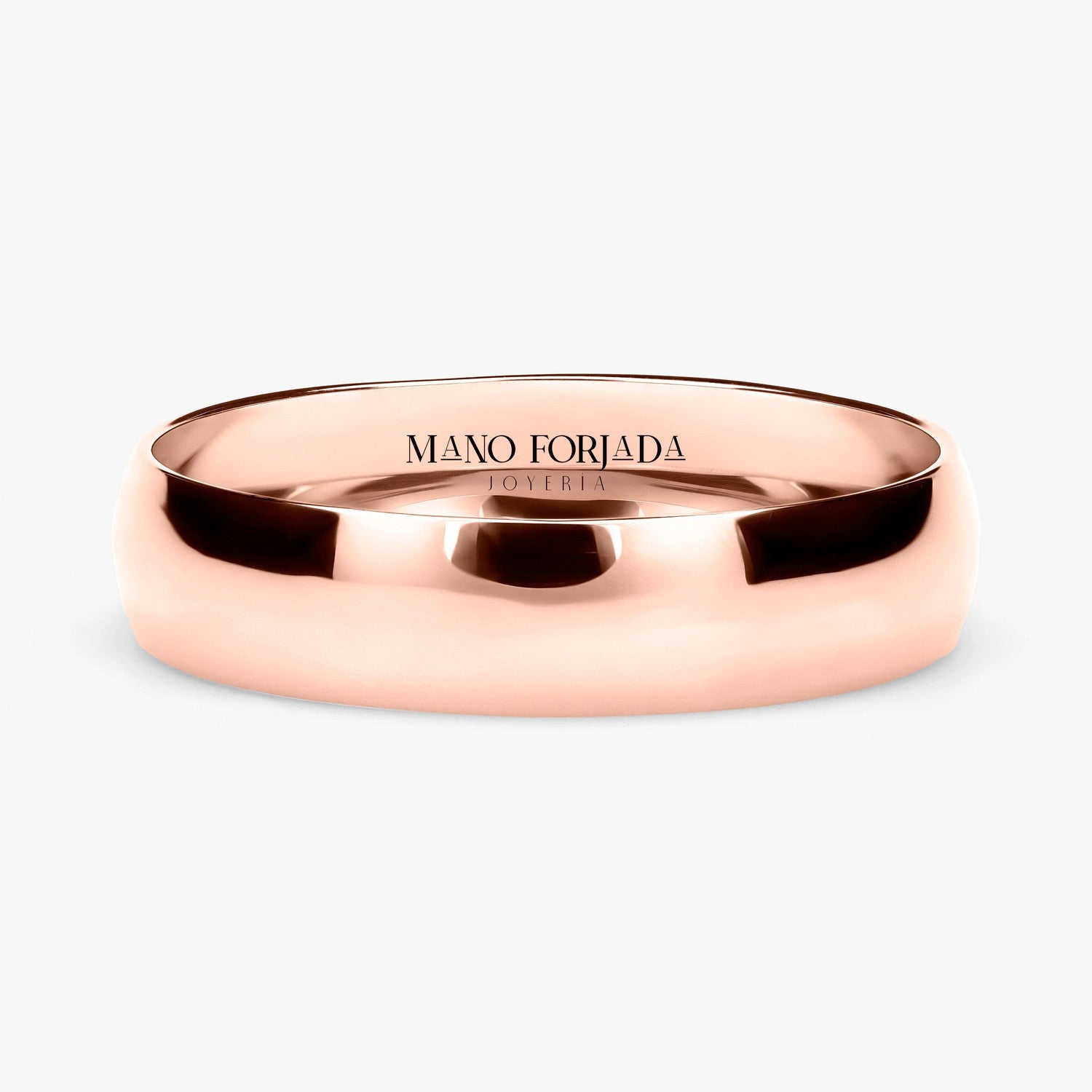 El tipo de argolla que estas viendo es tipo clásica, lo que significa que tiene forma de media caña al interior. Esta argolla es ligera, pero resistente. Esta hecha para durar toda una vida con un cuidado adecuado.