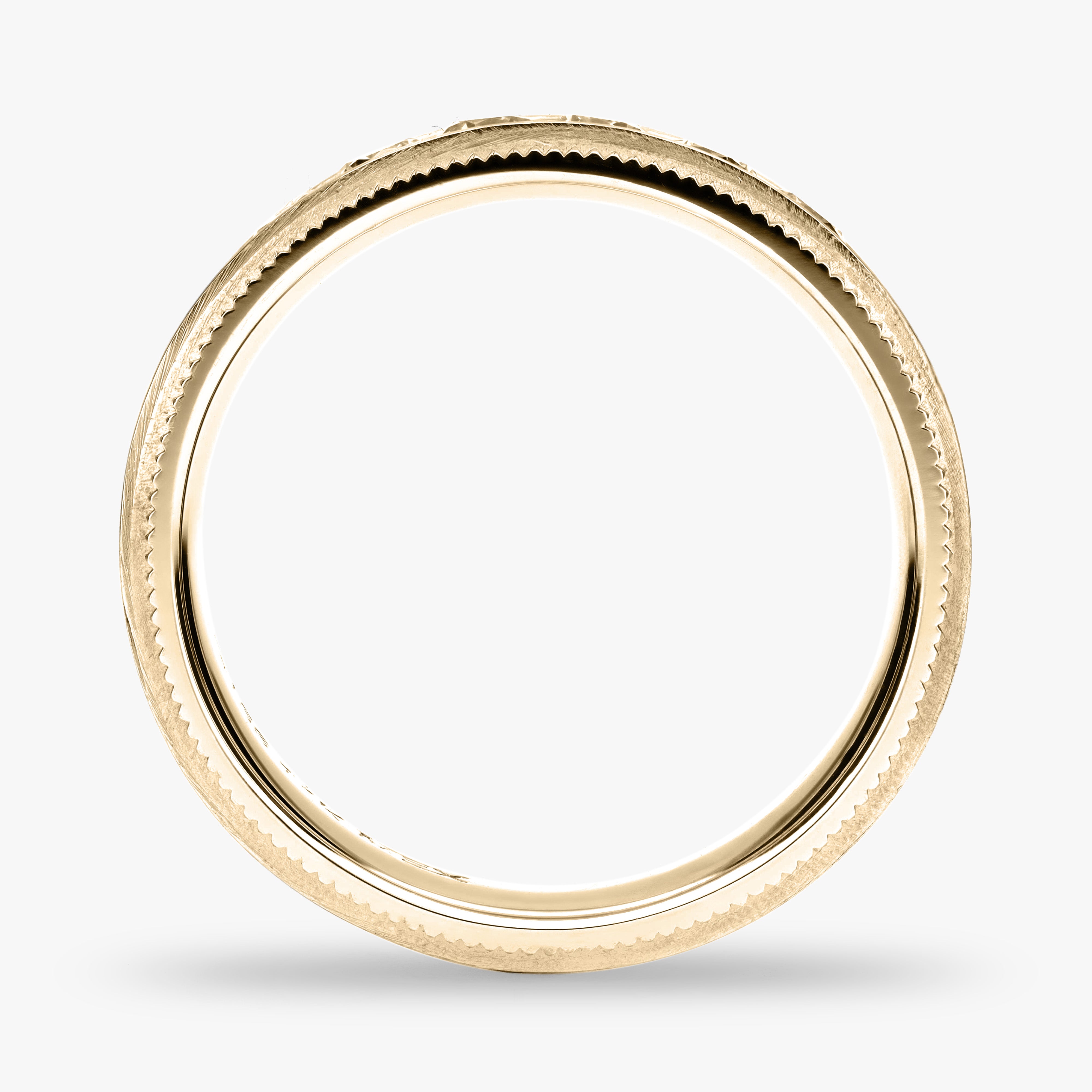 El tipo de argolla que estas viendo es tipo confort rellena, lo que significa que tiene forma acolchonada al interior. Esta argolla es la más pesada de nuestros modelos, muy resistente. Esta hecha para durar toda una vida con un cuidado adecuado.