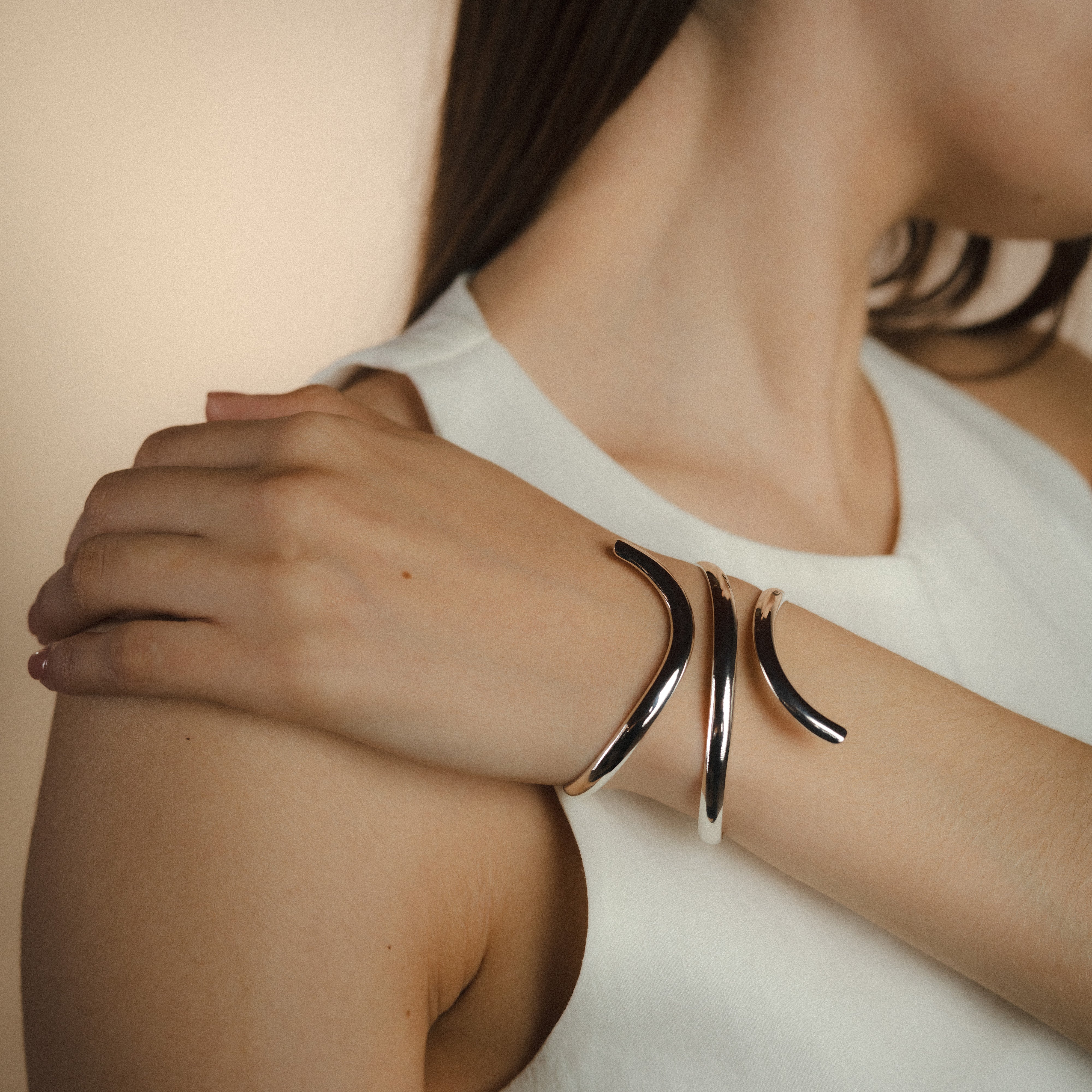 Descubre nuestra nueva colección de joyería en plata .925, que fusiona diseño minimalista y sofisticado en anillos, collares, gargantillas, brazaletes y aretes. Cada pieza está cuidadosamente elaborada por artesanos mexicanos en Taxco, Guerrero. Mano Forjada, llevando la esencia contemporánea de México hasta ti.