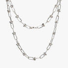Mide 48 cm aproximadamente y su diseño permite que eslabones semi-abiertos se amarren los unos con los otros gracias a la fricción que hay con las bolitas.